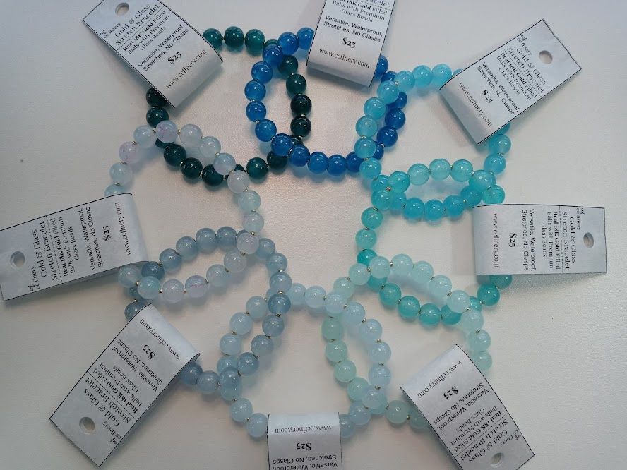 Gold & Glass Dainty Seed Bead Stretch Bracelets with Charm